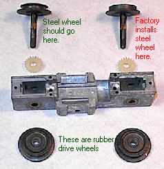 wheel-axle assemblies of the power truck are switched front to rear. The