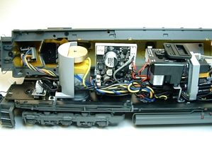 The sound board is the new Rails Sounds Lite board. The SD70 has a new fan driven smoke unit. |
