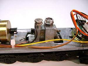 Here is the rear power truck with the added nuts on the extra post that I used to make the common connections to the chassis. |